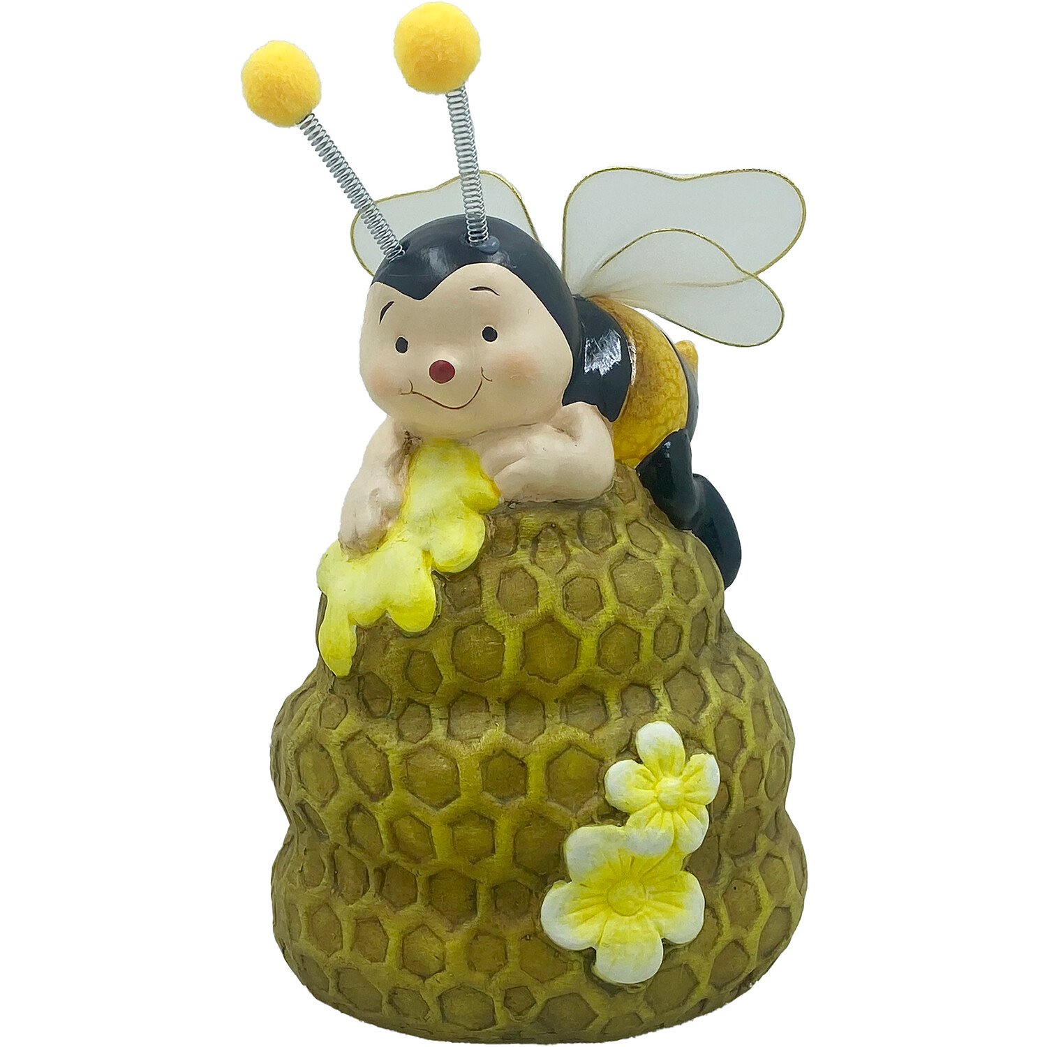 Add a touch of whimsical charm to your garden with this delightful Bee on Hive ornament. Its incredibly detailed design features a beautiful honeycomb pattern, delicate wings, and vibrant flowers, all hand-painted for a truly sensational finish. Perfect for flower beds and borders.