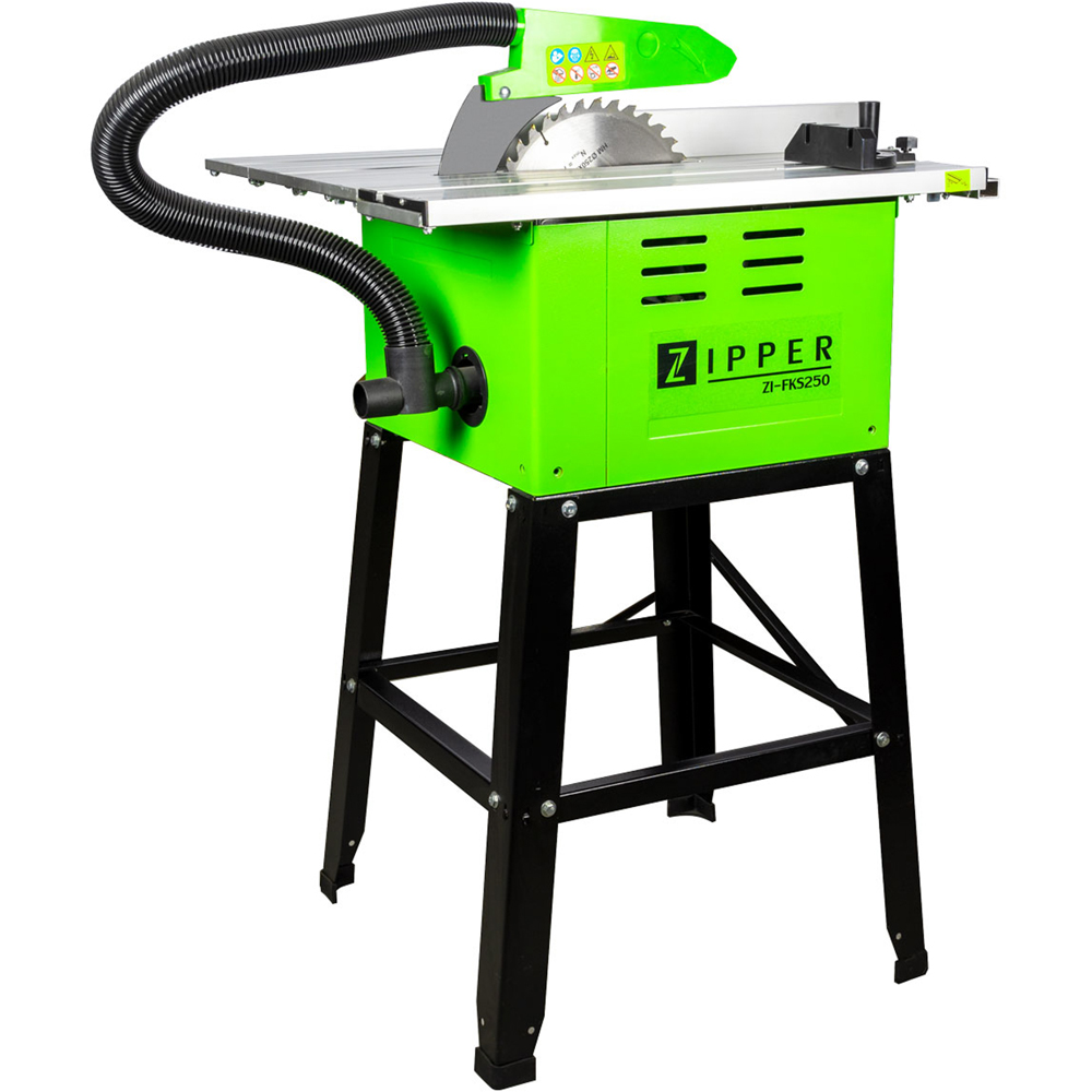 This workshop table saw is ideally suited to the enthusiastic home woodworker and light trade use. The Zipper ZI-FSK250 is a practical saw table with a powerful motor and good cutting capacities, perfect for trimming panels. It is an ideal portable saw table for woodworkers. An integral sliding table carriage enables accurate wider mitre cuts, as well as precisely sizing down wood-based panels and sheet material.