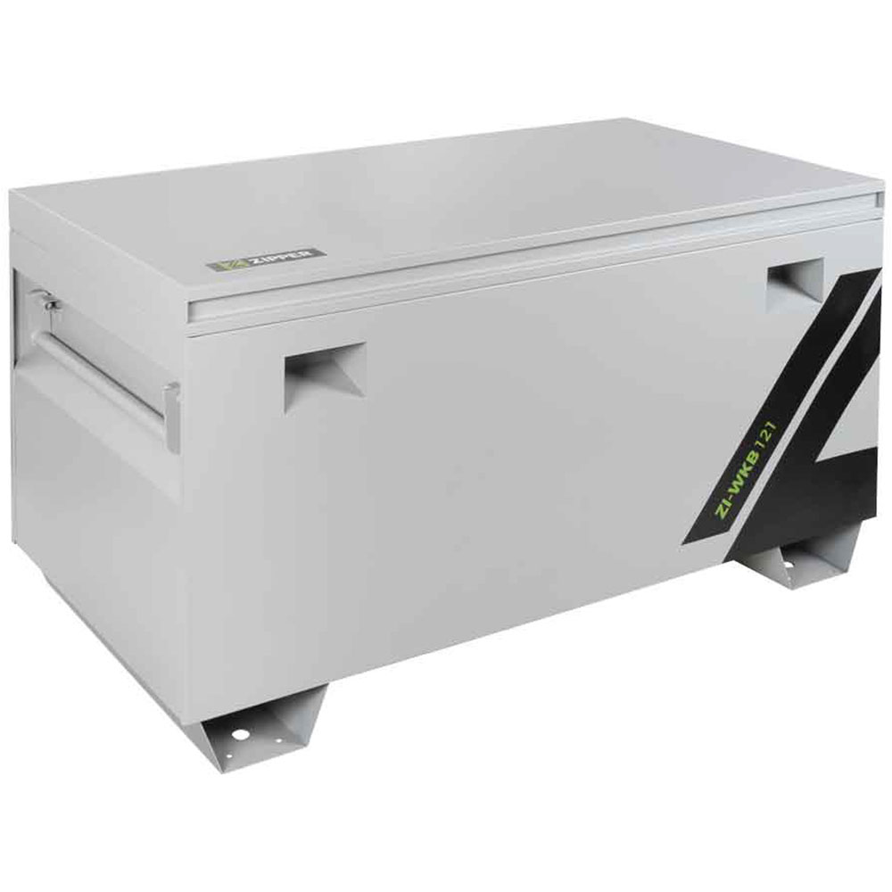 Keep your valuable tools safe and organised with the Zipper Grey Security Tool Box. Crafted from robust metal and finished with a durable, powder-coated RAL9006 paint, this multifunctional box is the ideal storage solution for your tools and equipment. Designed for ease of transport, it features metal feet for pallet truck compatibility and sturdy handles for carrying by one or two people. The stackable design maximises storage space, and it can be securely attached to the loading area of your transporter pickup truck using the integrated feet. Model no: ZI-WKB121.